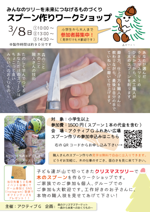 その会場に飾っていたクリスマスツリーから、スプーンをつくるワークショップを開催します。