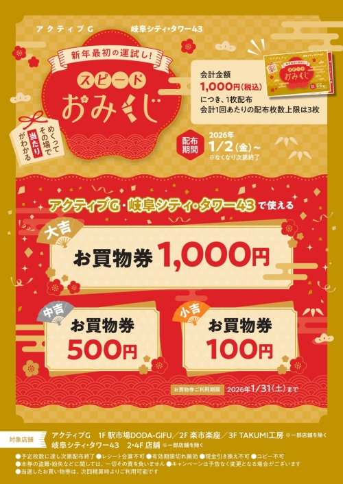 期間中、「アクティブG」か「ASTY岐阜」の対象店舗にて、