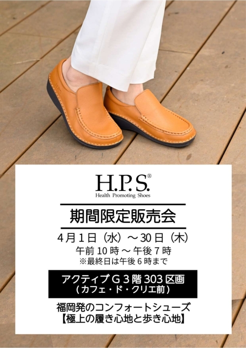 福岡発のコンフォートシューズ【H.P.S(エッチ・ピー・エス)】が、期間限定で販売会を行います。