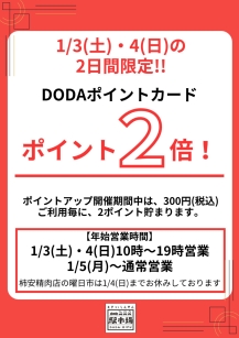 • 2026/1/3(土)、1/4(日) 2日間限定!DODA ポイント2倍♪