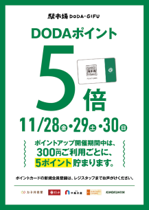 • 11/28(金)・29(土)・30(日) DODAポイント5倍デー