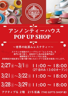 【中島水産】!!東北祭り!! 2026.02.07 駅市場DODA-GIFU カシワヤ 70周年大創業祭 開催!! 2026.02.06 カシワヤ 新メニュー!鶏すき鍋 2026.02.01 カシワヤ 大人_春の入学応援キャンペーン 2026.01.31 ECC外語学院 岐阜校 ♡ Chocolate Fair ♡ 2026.01.16 SUNDAYsGOOD 大人の北欧雑貨展 2026.01.07 SUNDAYsGOOD 新春福袋販売!! 2026.01.03 SUNDAYsGOOD HELLO NEW SOCKS 2025.12.08 SUNDAYsGOOD 【〜ながラー企画】出張しろく丸!絵本のよみきかせ... 2026年02月20日(金) NEW!!2026.02.08 【期間限定】人気の紅茶専門店「アンノンティーハウ... 2026年02月27日(金)~03月29日(日) NEW!!2026.02.11 岐阜のいちごおやつマルシェ2026開催 2026年02月28日(土)~03月01日(日) NEW!!2026.01.29 みんなのツリーを未来につなげるものづくり【スプー... 2026年03月08日(日) NEW!!2026.02.16 2025.12.17 年末年始営業時間のご案内 2025.11.02 11月休館日のお知らせ 2025.09.04 9月休館日のお知らせ 2025.07.01 7月休館日のお知らせ 2025.06.07 【プレスリリース】「中島水産」6月11日(水)オープン! 生本まぐろ解体販売、スピードくじ、ポイントアップデー等開催! ■駅市場DODA-GIFU 10:00〜21:00 ■レストラン・ショップ 10:00~23:00 ※営業時間は変更となる場合がございます。 詳しくは各店舗へお問い合わせ下さい。 休館日 奇数月 第3火曜日 アクティブG〒500-8856岐阜市橋本町1丁目10−1