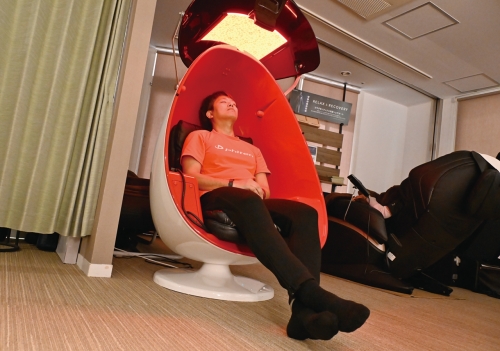 ⽬的や体調に合わせて気軽に利用できるエステマシーンを完備。独自のアクアゴールドを採用した美容商品も取り扱っており、店舗でお試しできます。