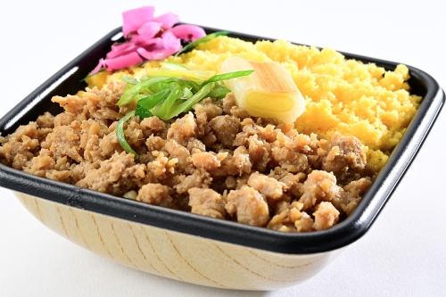 甘辛く炊き上げた鶏そぼろと、ふんわり甘い玉子そぼろ