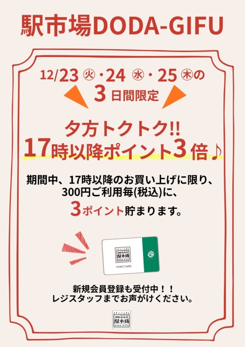 夕方トクトク!!17時以降ポイント3倍♪