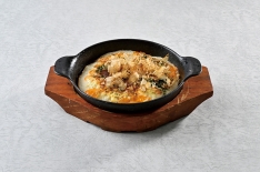 飛騨地方の郷土料理「鶏ちゃん」に、とろ~り濃厚なチーズをたっぷりのせてアレンジ。振りかけられた黒胡椒の程よいアクセントも◎。